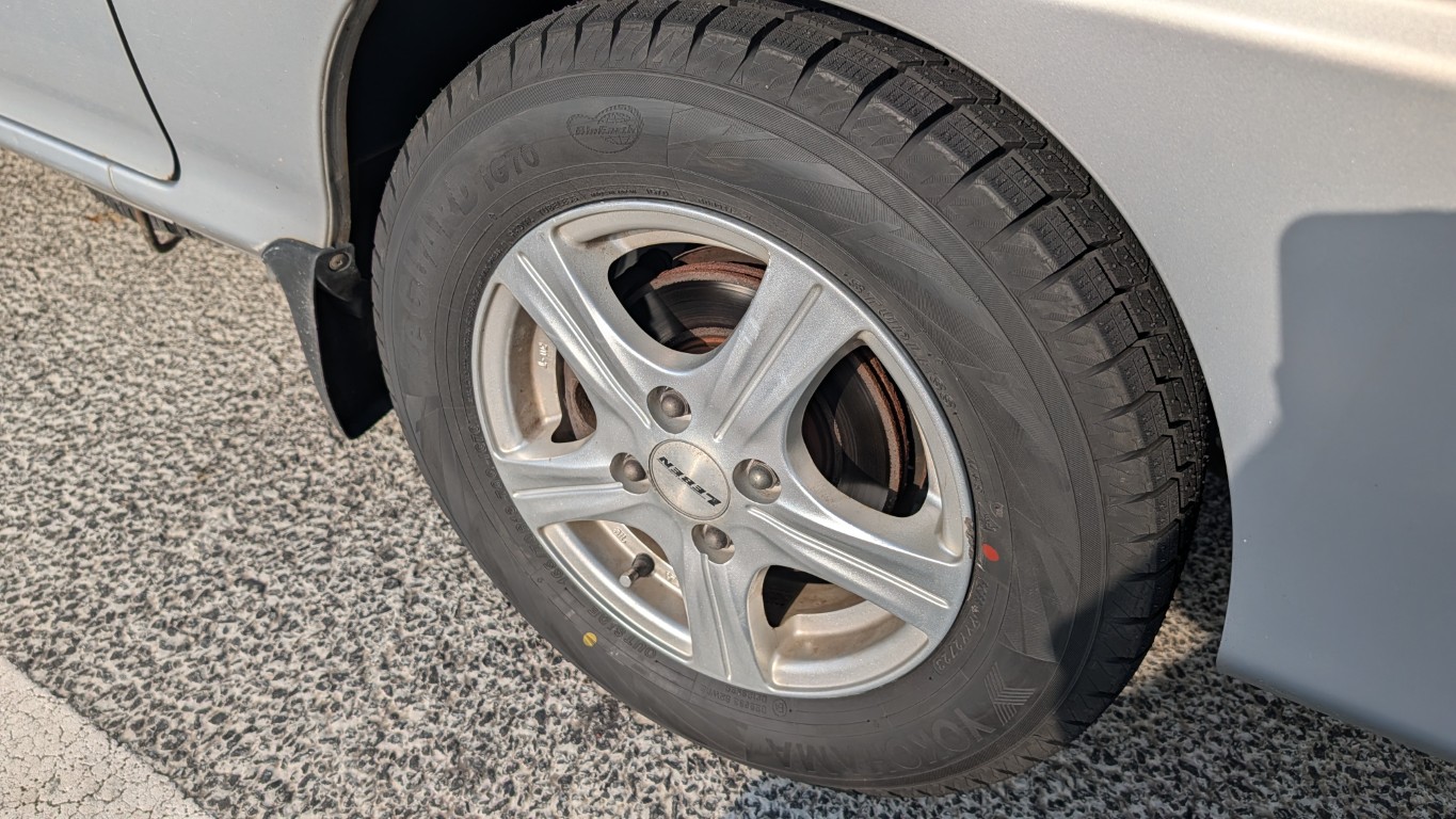 サンバーディアスワゴン(TW1)のタイヤサイズは165/70R13。ネットで調べても妙に選択肢が少ないなーと思って販売店で聞くと、レアなタイヤサイズなんだそうです。というか年式古すぎて「今どきのタイヤじゃない」ってことだろうね。