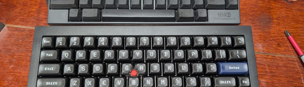 普段パソコンのキーボードはHHKBを使っています。トラックボールやトラックパッドと合わせて使っているのですが、やはりThinkPadのトラックポイントに憧れがあります。一時期サブPCでよく使っていたので便利さは知っています。その後トラックパッドを使っていたりもしましたが、製品が続かなくなって親指トラックボールに乗り換え。以後HHKBとトラックボールの組合せを自宅・職場・モバイルで使っています。まぁとにかくHHKBありき。